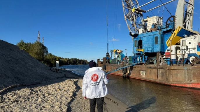 На місці працювала баржа Р-543 та буксир БМ-8, якими здійснювалася незаконна вигрузка піску, передає СтройОбзор із посиланням на СтопКор.