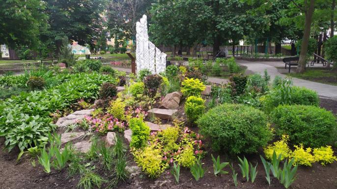 «У рамках поточного ремонту скверу було влаштовано поливо-зрошувальну систему, встановлено нові лави.