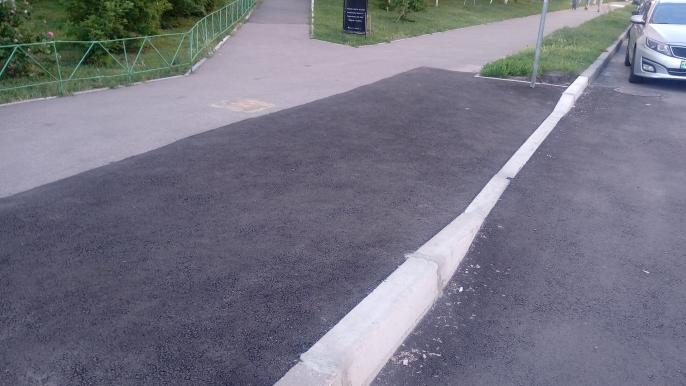 Також цьогоріч роботи щодо пониження бортового каменю тротуарів та пішохідних доріжок були виконані за адресами: