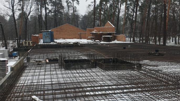 Першим етапом будівництва стали підготовчі роботи — розчищення території, облаштування котловану. Згодом фахівці збудували монолітний каркас та завершили будівництво перегородок першого поверху. Наразі фахівці зводять стіни та внутрішні перегородки другого поверху, влаштовують перекриття та покрівлю. Паралельно будівельники виконують гідроізоляцію зовнішніх стін.