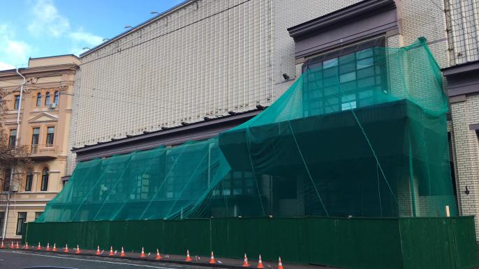 Здание кинотеатра «Украина» в Киеве обнесли сеткой – что здесь будет ремонт, стройка или демонтаж, никто не знает.