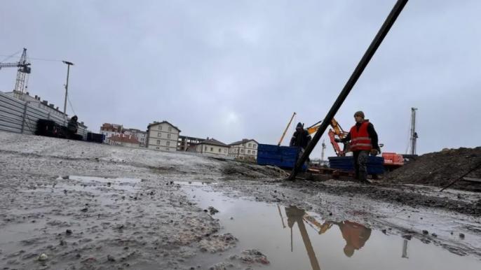 Тяжелая техника активно работает на участке возле домов №10-30, уже вырыт котлован глубиной до 10 метров. Однако представители охраны отказались давать какие-либо комментарии, а прораб на месте так и не появился.