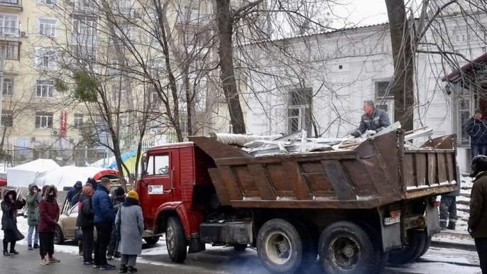 «Застройщик привез Камаз (государственный номер – АА 5726 ТО) с рабочими, проводившими внутренние работы, в результате начали вывозить строительные материалы, являющиеся вещественными доказательствами уголовного правонарушения – это части разрушенных еще 20 августа 2021 года стен усадьбы Барбана», - сообщает активист.