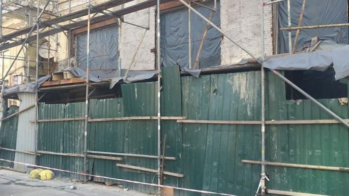 Коммунальщики уже демонтируют леса и закапывают котлован с фасадной части дома.