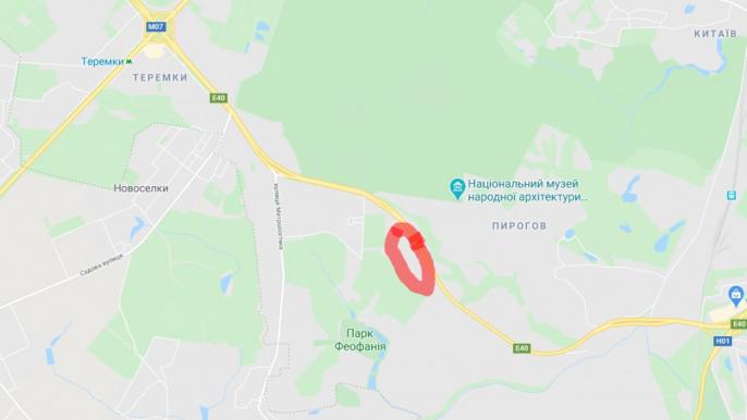 Ради строительства жилого комплекса на земельном участке, расположенном между парком «Феофания» и Национальным музеем народной архитектуры и быта вырубают деревья.