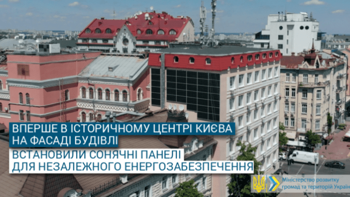 На здания Министерства развития общин и территорий Украины установили фасадные солнечные панели для независимого энергообеспечения.