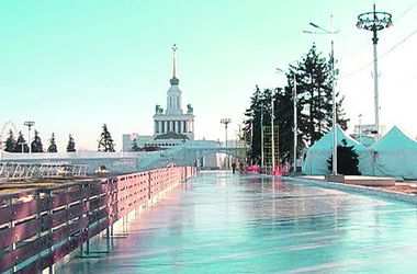 На территории Национального комплекса «Экспоцентр Украины» (ВДНХ) по проспекту Академика Глушкова залили огромный ледовый каток под открытым небом.