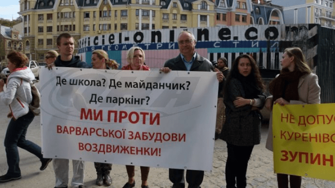 В корпорации «Укрбуд» сообщили, что за разъяснениями к застройщику пикетчики не обращались. И уверили, что в рамках ЖК строятся семь малоэтажных домом в стилистике XIX века, которые вполне вписываются в архитектуру и ландшафт Воздвиженки. А заявления о строительстве «14-этажных бетонных монстров» не соответствуют действительности и являются примером манипуляции общественным мнением и зарабатывания очков у избирателей накануне муниципальных выборов.