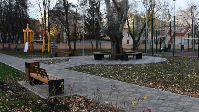 На обновленной локации оборудовали волейбольную площадку с резиновыми покрытием, установили современное энергоэкономное освещение. А также в обновленном сквере стоят новые лавочки с урнами, проведено озеленение территории.