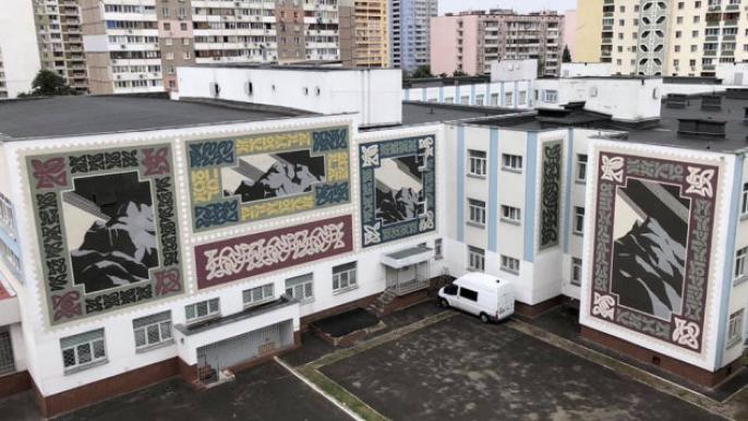 На стенах Скандинавской гимназии на ул. Бориса Гмыри, 3б в Киеве художники изобразили тематический мура.