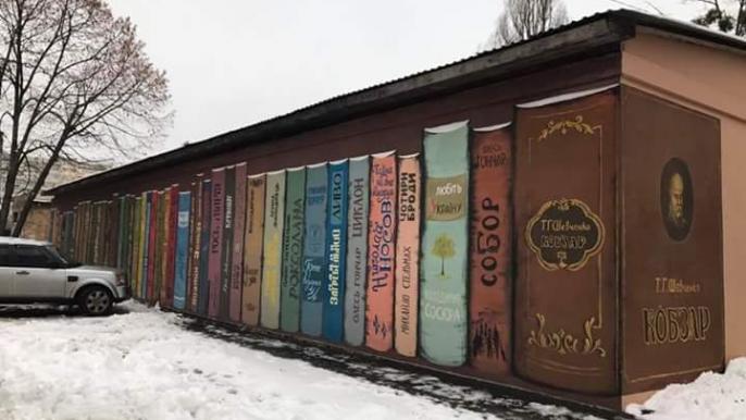 В одном из дворов художники превратили гаражи в книжную полку, передает СтройОбзор.