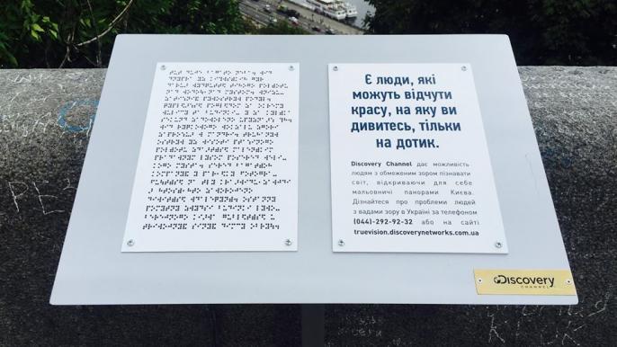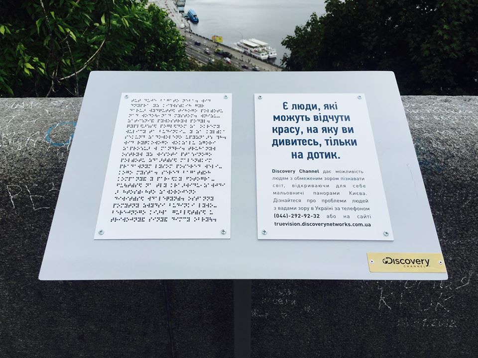 В рамках социальной программы See The Blind от Discovery Channel и в дальнейшем планируется установка информационных табличек с описанием объектов шрифтом Брайля для незрячих людей в знаковых местах Киева.