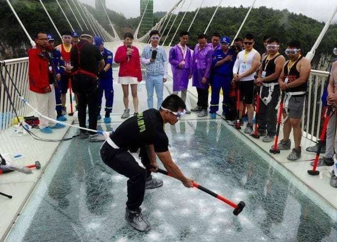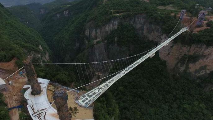 Китайский мост выполнен из стекла полностью, его длина 420 метров. Построен он на высоте 300 метро.