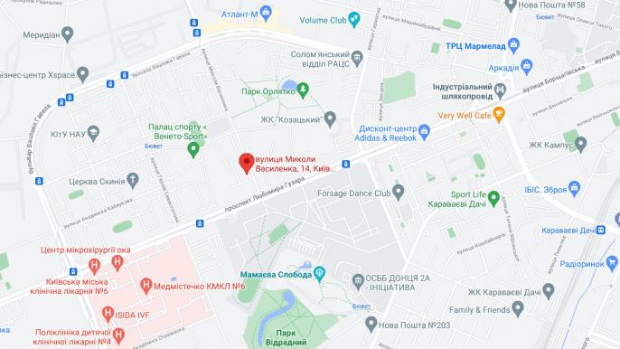 Депутат сообщила, что, согласно данным информационно-аналитической системы “Майно”, участок по ул. Николая Василенко, 14 частично расположен в пределах зеленой зоны и числится за коммунальным предприятием по содержанию зеленых насаждений Соломенского района.