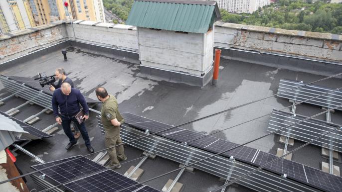 После восстановления многоэтажки ее жильцы установили на крыше солнечную станцию и необходимое оборудование – для того чтобы сделать дом энергостойким и независимым от отключений электроэнергии.