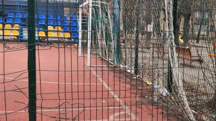 Неизвестные разгромили стадион в Святошинском районе Киева.