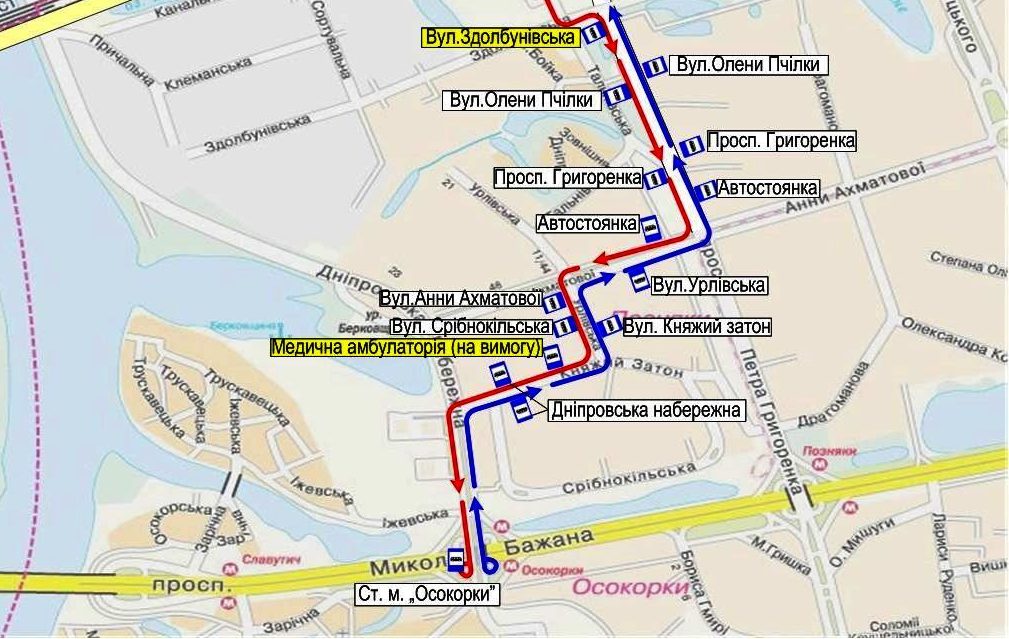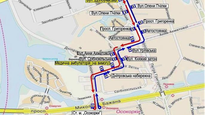 - на ул. Княжий Затон, 10 в направлении ст. м. «Осокорки» для автобусов маршрутов №№ 35, 42 восстанавливается работа остановки «Медицинская амбулатория» с режимом работы «по требованию»;