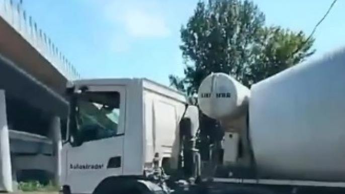 Водій бетонозмішувача безкарно зливає бетон у річку біля Подільського мосту
