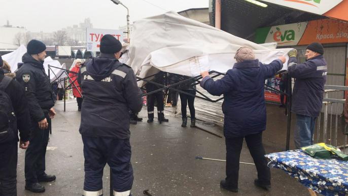 Коммунальщики демонтировали торговые точки на Центральном железнодорожном вокзале.