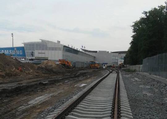 "Первые 250 метров железнодорожной колеи, которая будет примыкать к терминалу D Международного аэропорта", - написал он в Facebook.