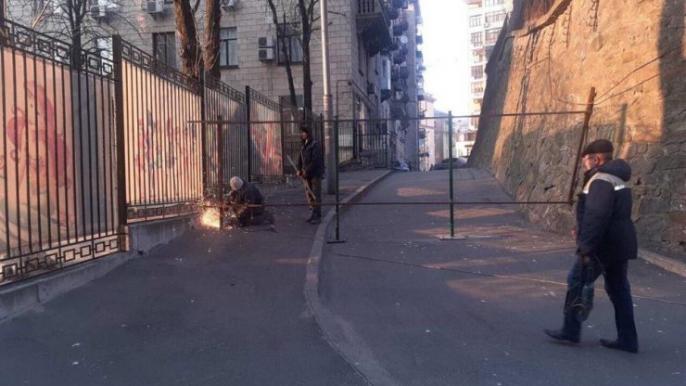 В Киеве на ул. Круглоуниверситетской, 5-7 застройщик перегородил проход к Крещатику.