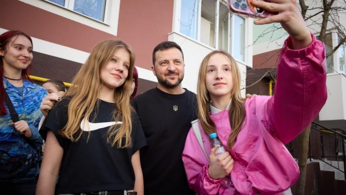 В Ірпені на Київщині Президент України Володимир Зеленський оглянув відремонтовані житлові будинки, котрі були пошкоджені внаслідок повномасштабного російського вторгнення в лютому – березні 2022 року.