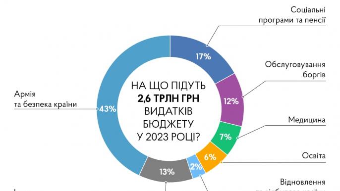 Другим пріоритетом буде соціальне забезпечення. Пенсії, допомога внутрішньо переміщеним особам, субсидії, медицина й освіта. Сукупно це більше 30% видатків бюджету.
