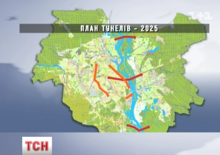 В частности запланировано три подземные автодороги, настоящие, многокилометровые, которые должны разгрузить центр города, и еще три - которые пройдут даже под Днепром. Один из них, длиной 7 километров, будет простираться от площади Победы до метро Левобережная.