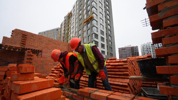 По словам Владимира Жигмана, директора по строительству группы компаний DIM, сегодня на стройках задействовано лишь 40–50% рабочих от довоенного уровня: