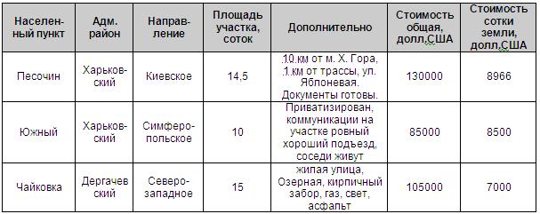 Харьковский район – 200-9000 долл.США/сотка