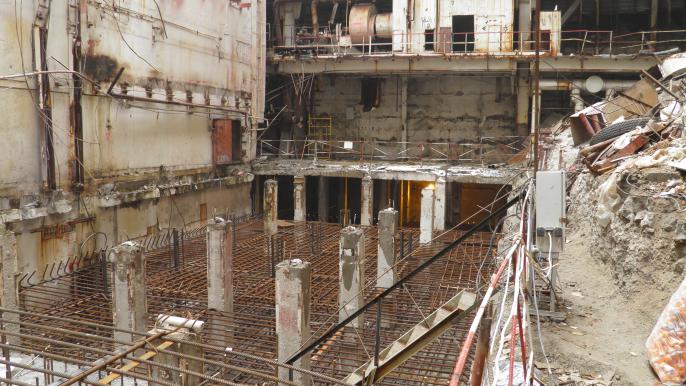 Как сообщили СтройОбзору в пресс-службе корпорации, на предыдущем этапе специалисты входящей в состав "Укрбуда" компании "Укрэнергомонтаж" демонтировали на этом участке десятки тонн технологического оборудования, срезали старые трубопроводы и металлоконструкции, а также убрали сотни кубометров аварийного бетона, уложенного в ходе ликвидации последствий аварии в 1986 году. Работа велась в сложных радиационных условиях, поскольку из-за высокого уровня излучения на некоторых площадках строители могут находиться всего полчаса за смену. Но именно этот этап имел критическое значение для проекта – теперь ничто не мешает укладке фундамента и последующему возведению стены.