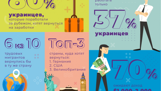80% украинцев, которые уже поработали за рубежом, хотят опять вернуться на заработки. 8% уже даже нашли новый вариант, а 41% соискателей находятся в активном рабочем поиске за пределами Украины.