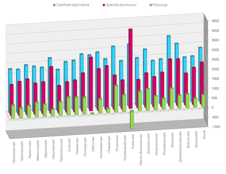 От 2 000 до 3 000 грн. просят владельцы за аренду однокомнатной квартиры в Днепропетровской, Донецкой, Львовской, Николаевской, Одесской и Харьковской областях. При этом средними зарплатами более 3 000 грн могут похвастаться только жители Донецкого и Днепропетровского регионов.