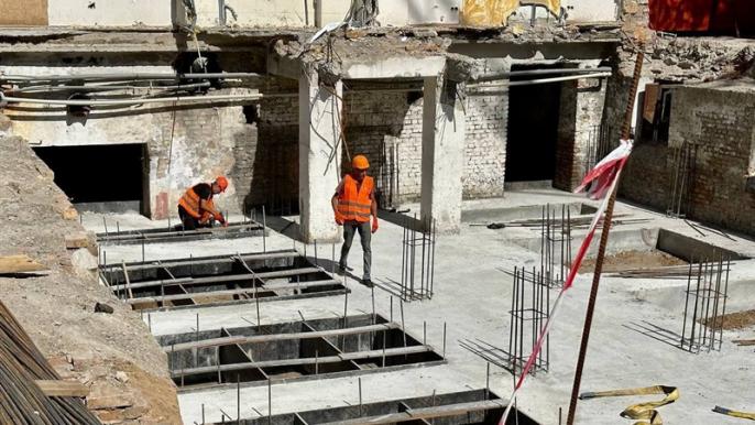 В Тростянці на Сумщині активно тривають роботи в двох п’ятиповерхівках: проводиться монтаж вікон та балконних блоків, міжкімнатних перегородок. Виконуються роботи з улаштування залізобетонного перекриття. Проводяться роботи з влаштування комунікаційних мереж: електроживлення, водопостачання і каналізації. Через обстріли російськими танками й пожежі - будинки були суттєво пошкоджені. Також у Тростянці триває відновлення міської лікарні, яка була обстріляна з танків в березні 2022 року під час окупації міста.