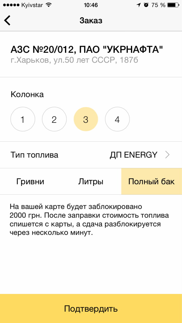 Чтобы воспользоваться Яндекс.Заправками, необходимо привязать к приложению карту Visa или MasterCard любого банка. Приложение работает так: пользователь выбирает АЗС, номер колонки и тип бензина, а затем указывает сумму, на которую хочет заправиться (не менее 50 гривен), или объём (не менее 5 литров). После того как оплата завершена, топливный пистолет на выбранной колонке разблокируется — и можно заправляться. В Яндекс.Заправках уже доступно более 1000 АЗС, в основном крупных сетей, и в будущем количество станций будет увеличиваться.