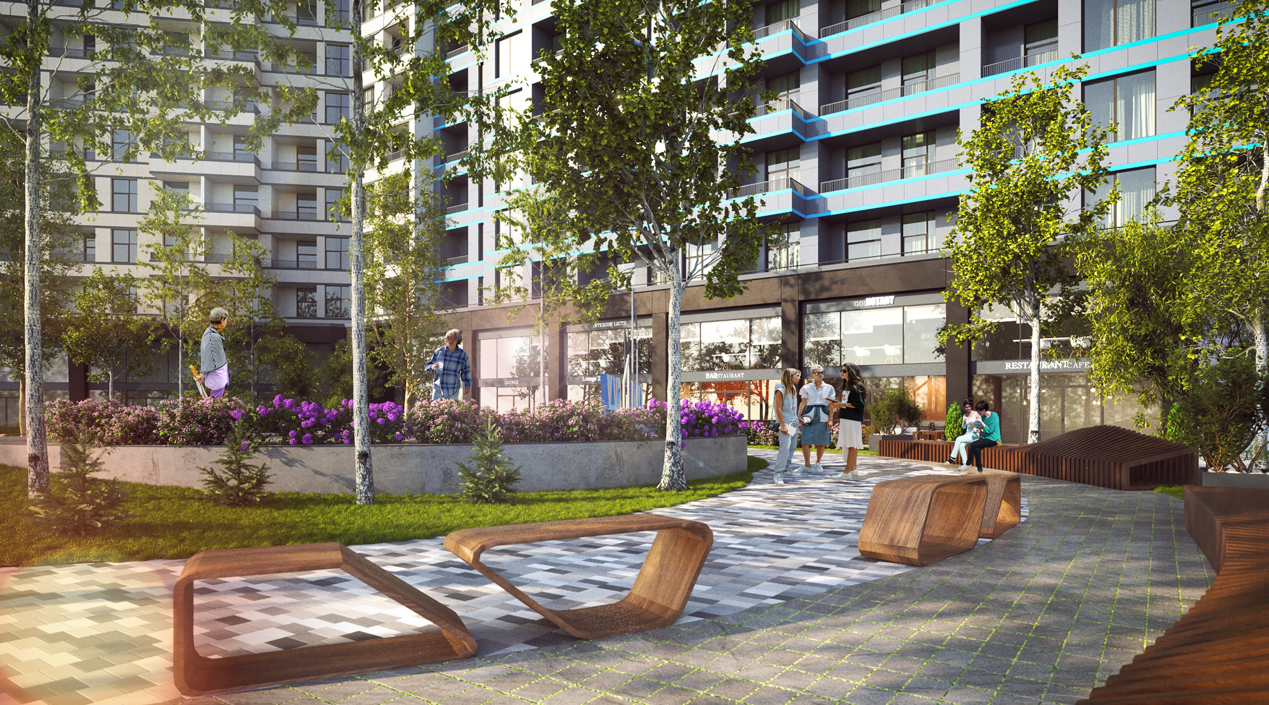 - Двор без машин и собственный паркинг — безопасная среда для детей, игры на свежем воздухе, удобства для жителей и гостей.