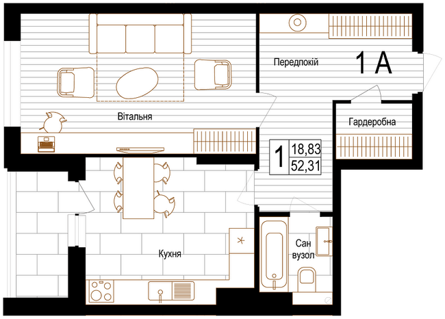 - ЦЕНА, КВ.М 62,875 грн за м² ~ $ 1,463 $/SQ.M