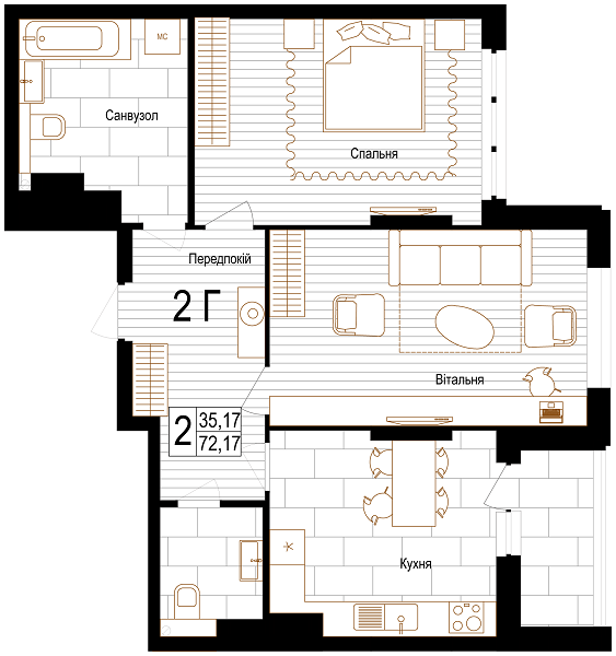 - ЦЕНА КВАРТИРЫ От 2,108,000 грн ~ От $ 49,073