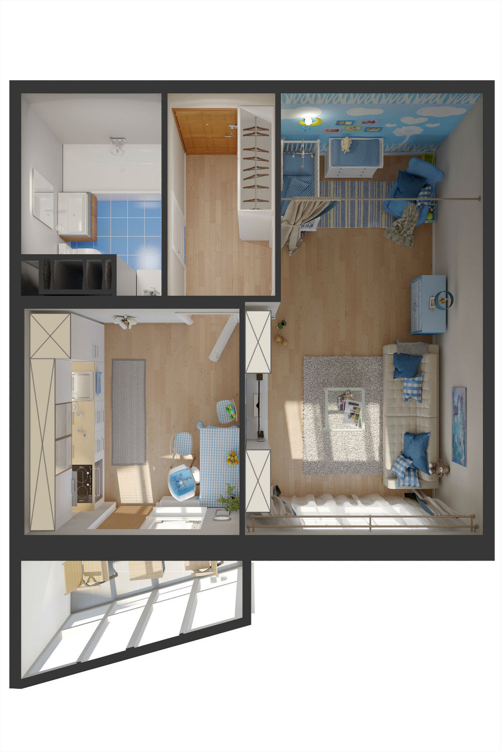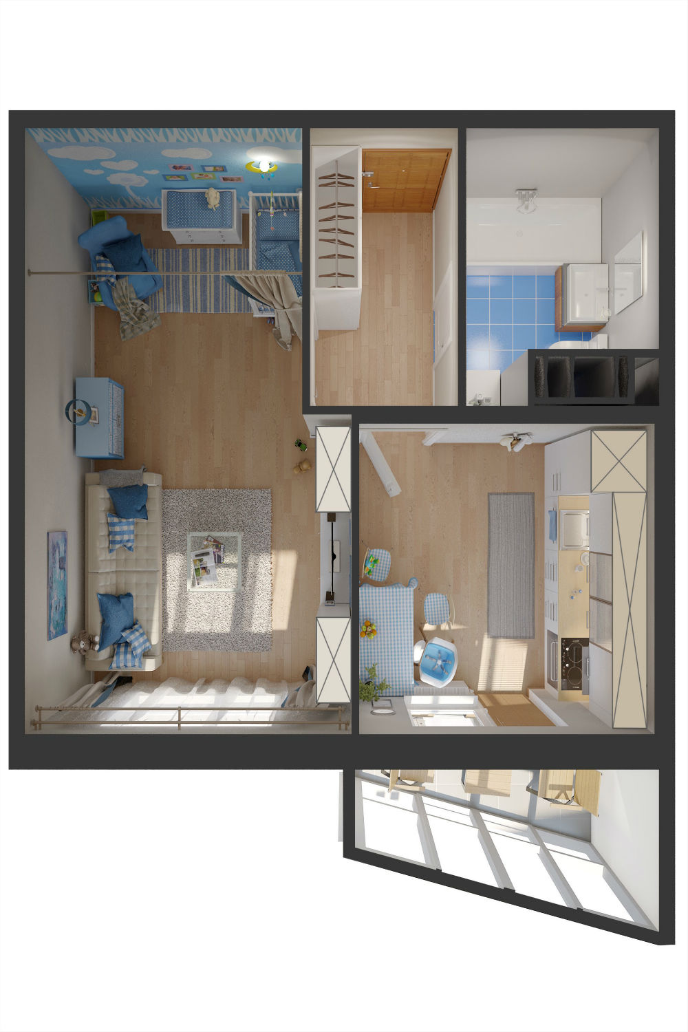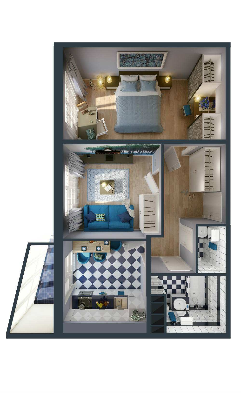 ЖК включает квартиры с продуманными планировками — от студий до просторных двухкомнатных квартир, обеспечивающих оптимальное сочетание цены, комфорта и функциональности. Просторные окна и качественные строительные материалы создают светлый и уютный интерьер каждой квартиры.