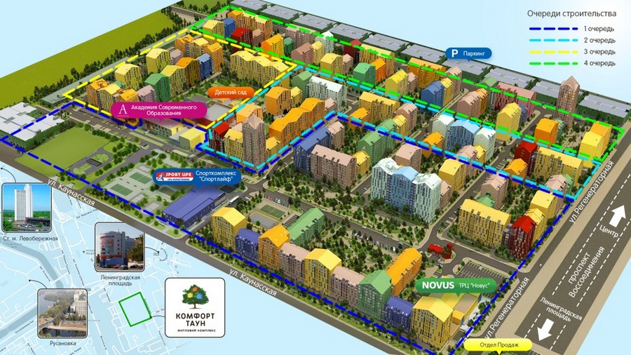 - Удобные планировки — 1-, 2-, 3-комнатные квартиры, удобные решения для семей и молодых пар, просторные комнаты и продуманные планировочные решения.
