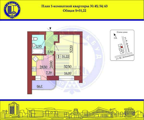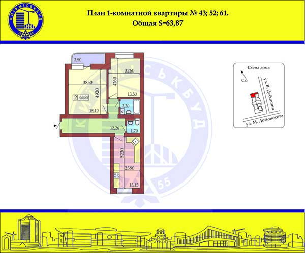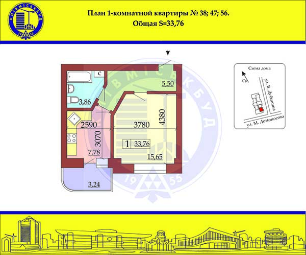 - 1-комнатные квартиры от ≈53 до 70 м²;