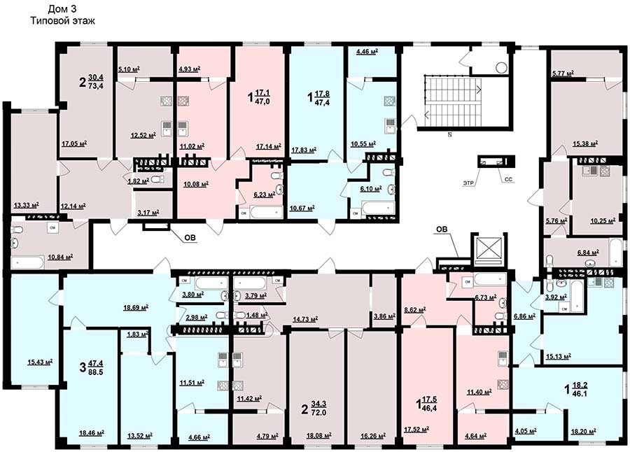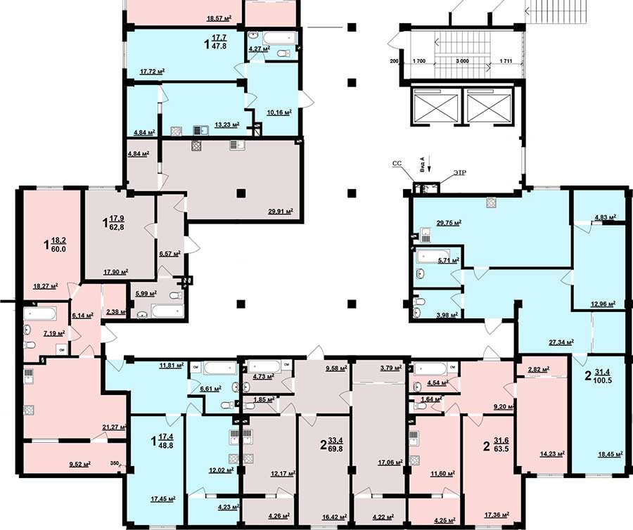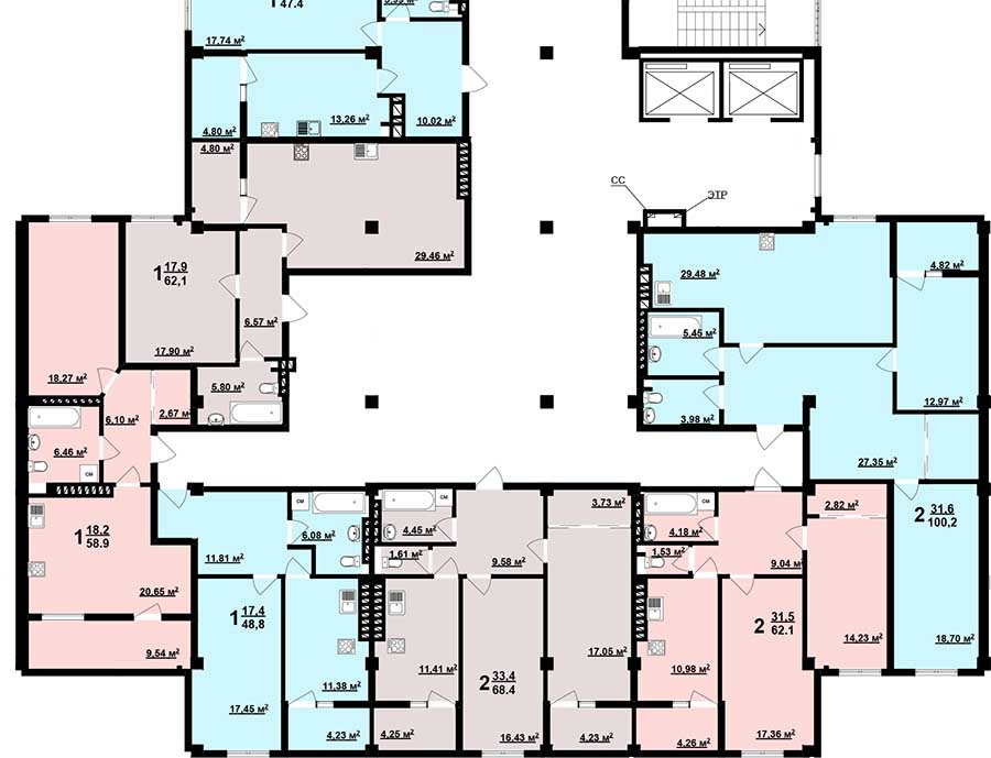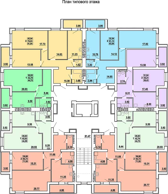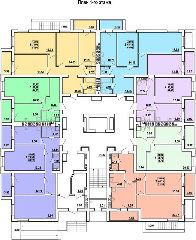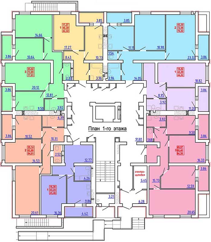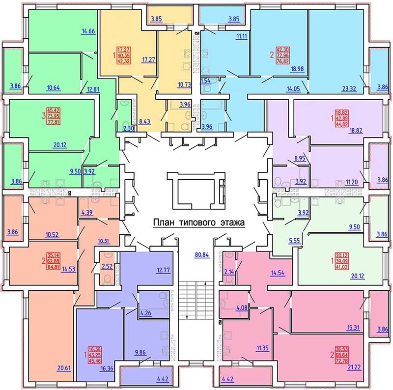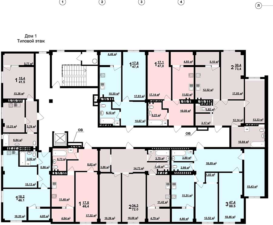 В новостройке предлагаются 1‑, 2‑ и 3‑комнатные квартиры с различными планировками, что позволяет подобрать комфортное жильё в соответствии с потребностями каждой семьи. Размеры квартир и возможность объединения соседних помещений обеспечивают гибкость при выборе площади.