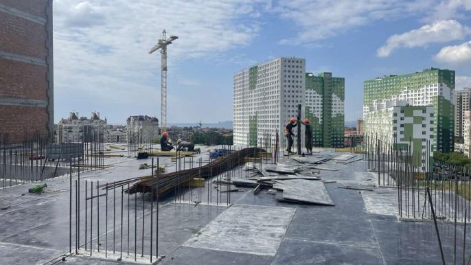 • 2 секція: Виконано армування та бетонування плити перекриття шостого поверху. Виконано армування та бетонування вертикальних елементів сьомого поверху. Виконано армування та бетонування плити перекриття сьомого поверху. Ведеться армування та бетонування плити перекриття восьмого поверху. Ведеться влаштування сходових маршів та площадок.
