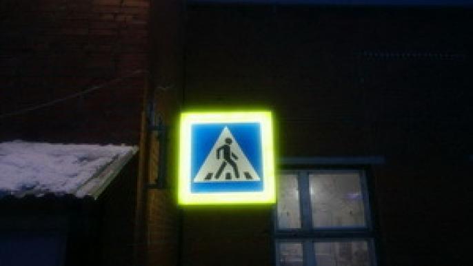 Двухсторонний информационный дорожный знак с подсветкой предназначен обеспечить хорошую видимость в ночное и сумеречное время дорожного знака «Пешеходный переход».