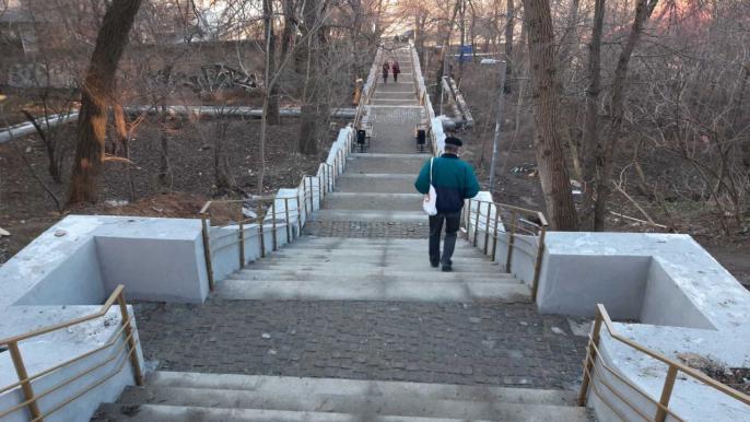 Лестница длиной около 86 метров соединяет улицу Градоначальницкую с улицей Балковской. Здесь были разобраны старые аварийные ступени, укреплена их основа, ступени частично заменены на новые, старые поручни частично демонтированы и установлены новые, выполнен капитальный ремонт парапетов, уложена гранитная плитка, а также организовано асфальтное покрытие шириной 1,5 м и длиной 60 м.