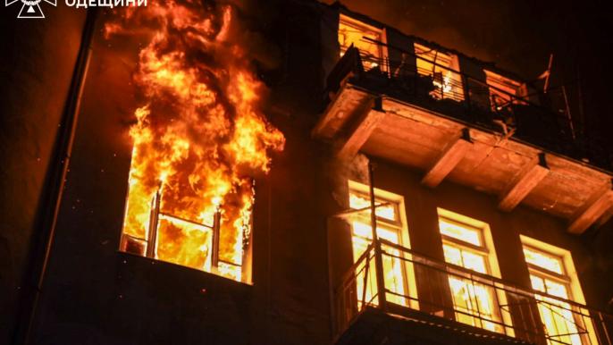 Унаслідок влучання ударного безпілотника спалахнула масштабна пожежа, що буквально знищила житлову чотириповерхівку. Рятувальники врятували 3 особи, ще 6 евакуювали. Під час ліквідації пожежі та порятунку людей на рятувальників обвалилися конструкції — постраждали 3 вогнеборці, зараз вони у лікарні в стабільному стані.