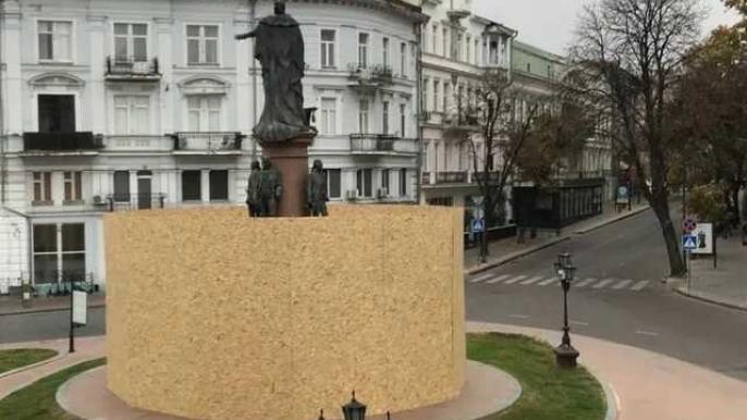 В Одесі пам'ятник Катерині II обнесли парканом у процесі підготовки до демонтажу скульптурної композиції.