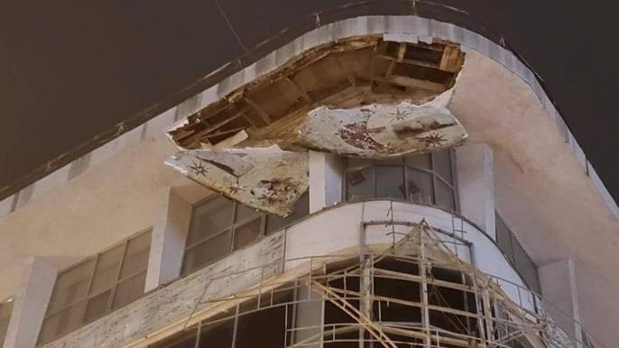 Собственник здания уже приступил к ликвидации аварийных элементов карниза.