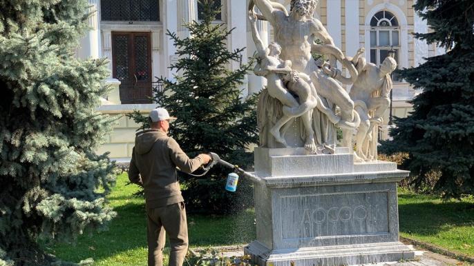 Начался текущий ремонт памятников культурного наследия – скульптурной композиции «Лаокоон и сыновья», расположенной у Археологического музея, и скульптуры «Эрот и Психея» в сквере Пале-Рояль.