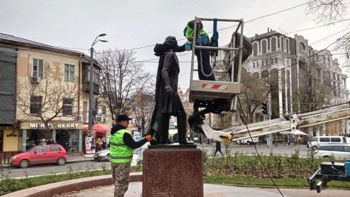 Одесские коммунальщики обрабатывают памятники антивандальным покрытием.